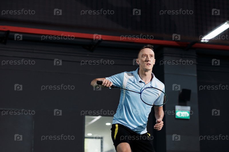 Тренировка игрока в бадминтон на корте