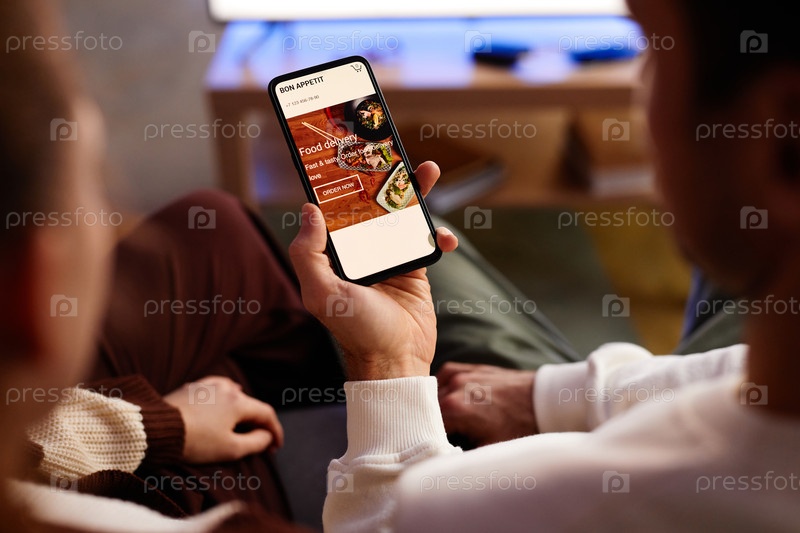 Пара заказывает еду онлайн на мобильном телефоне