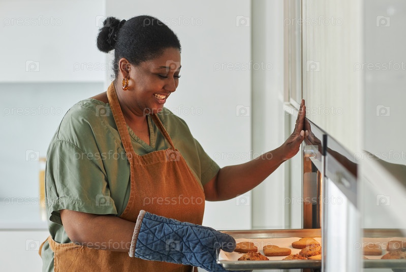 Домашняя хозяйка печет печенье на кухне