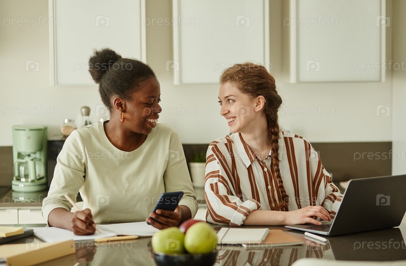 Две девушки, которые работают дома вместе