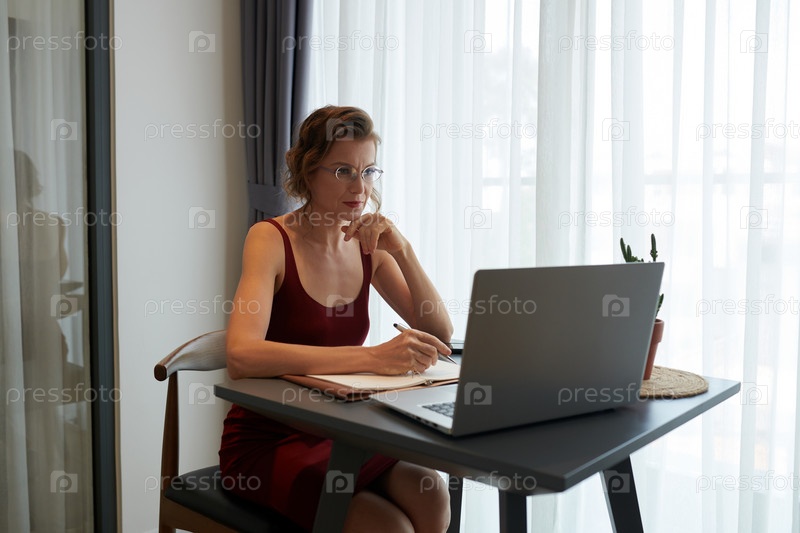 Деловая женщина, посещающая онлайн-встречу