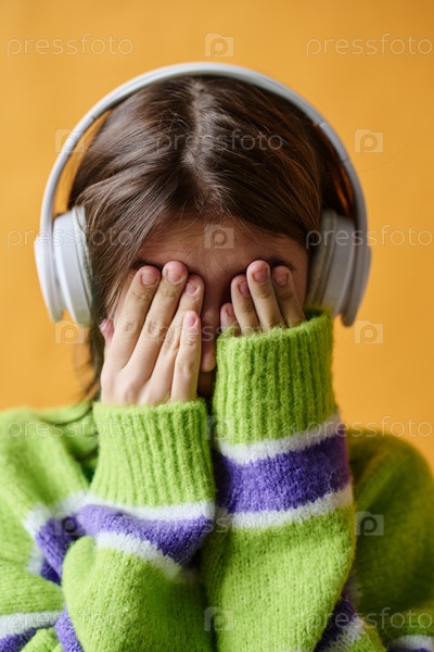 Печальная девочка-подросток в наушниках