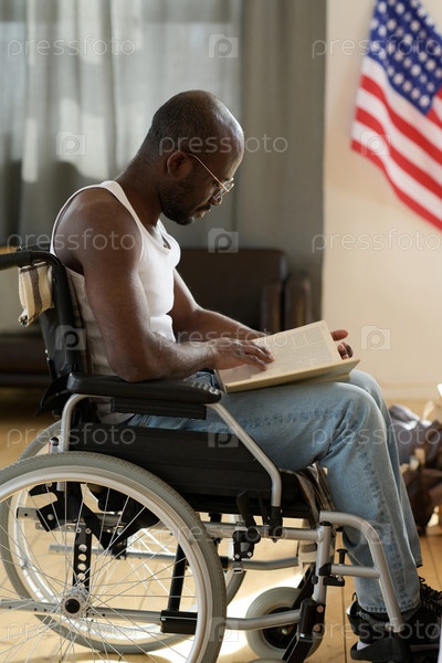 Человек с ограниченными возможностями читает книгу дома