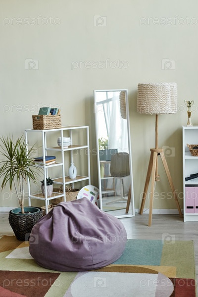 Фон игривый домашний интерьер в пастельных приглушенных цветах с удобной сумкой для бобов