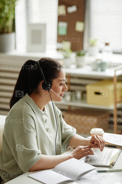 Женщина-оператор, работающая в колл-центре