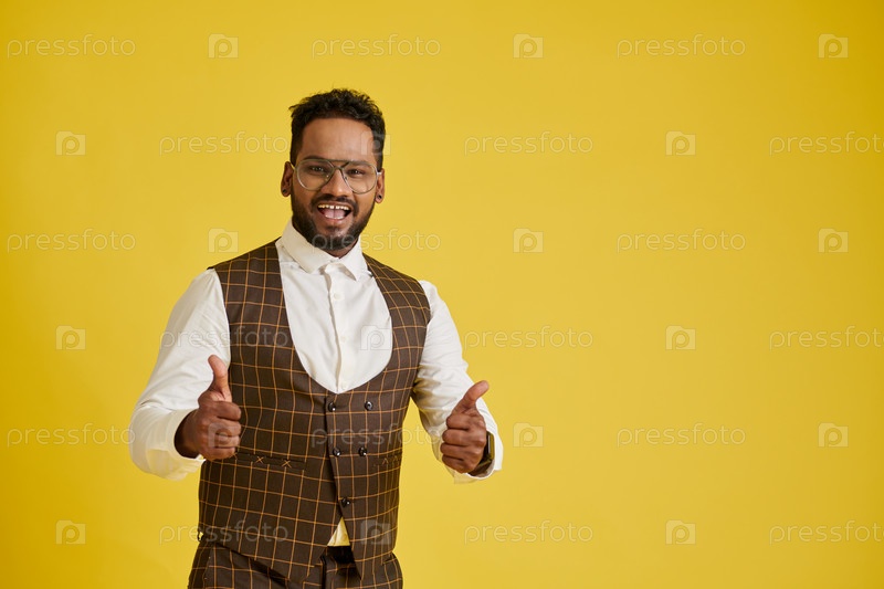 Взволнованный мужчина показывает палец вверх