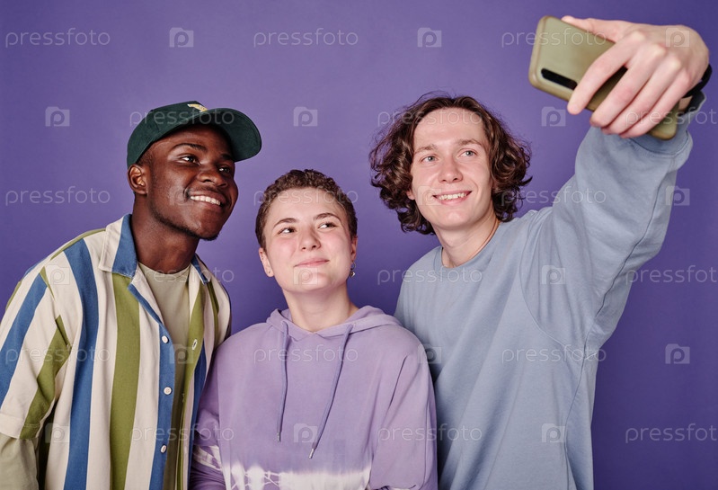Студенты делают селфи на смартфоне