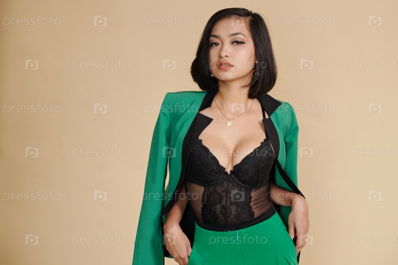 Женщина, носящая корсет под курткой
