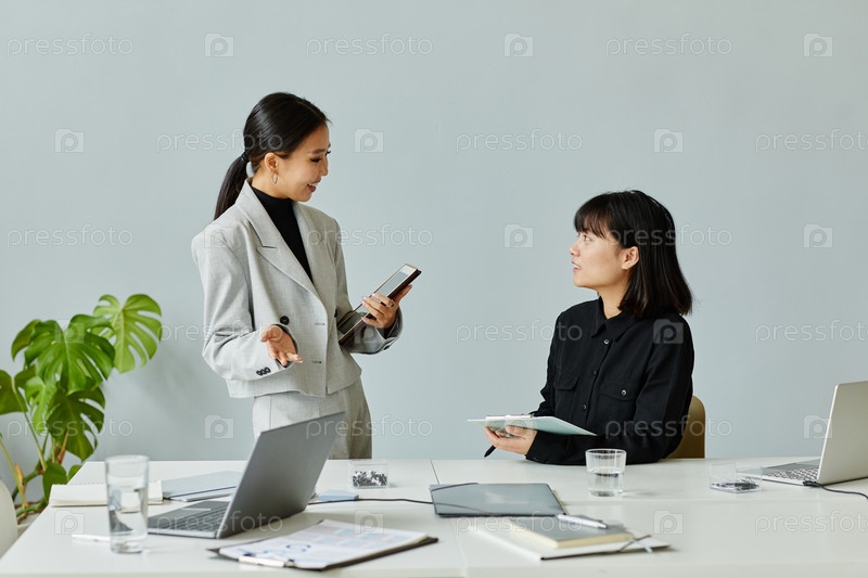 Две деловые женщины, разговаривающие в офисе Минимальный