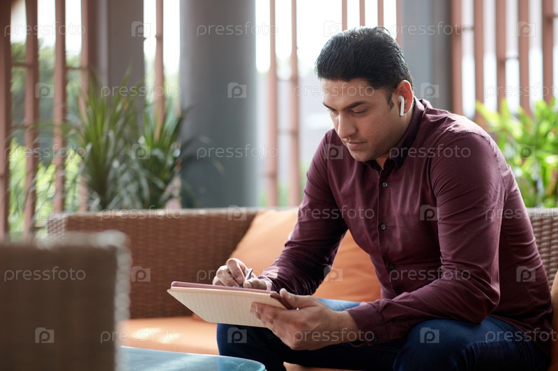 Бизнесмен Заполнение формы на планшете