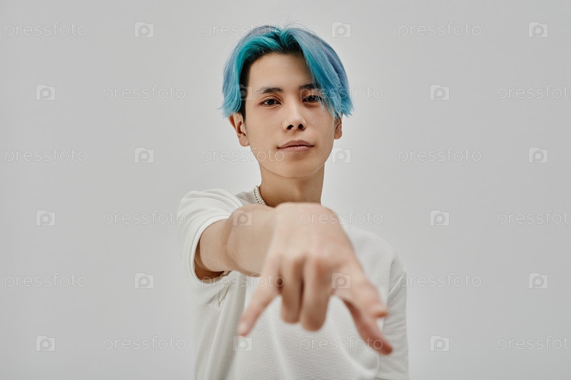 Азиатский стильный подросток с голубыми волосами