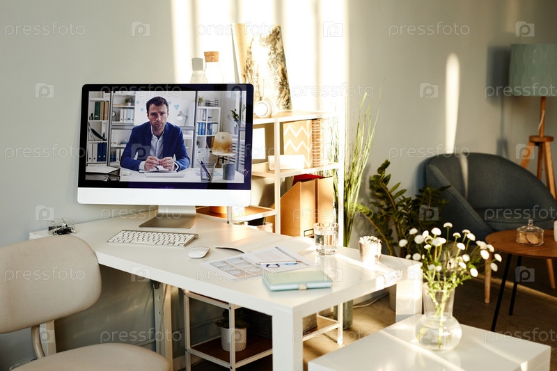Офисный интерьер с современным настольным компьютером