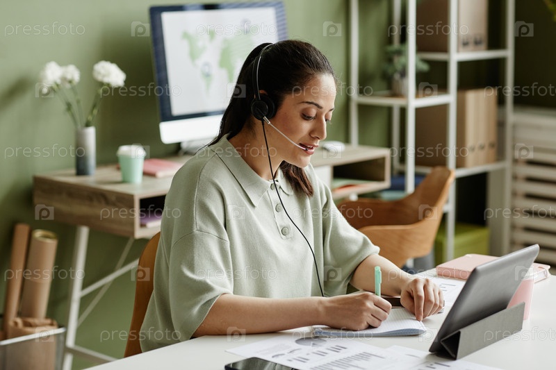 Деловая женщина проводит онлайн-встречу в офисе