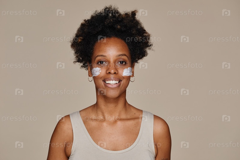 Улыбающаяся чернокожая женщина с минимальным кремом для лица