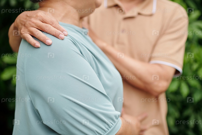 Старший мужчина обнимает жену
