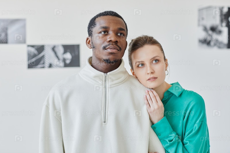 Пара смотрит на искусство в музее
