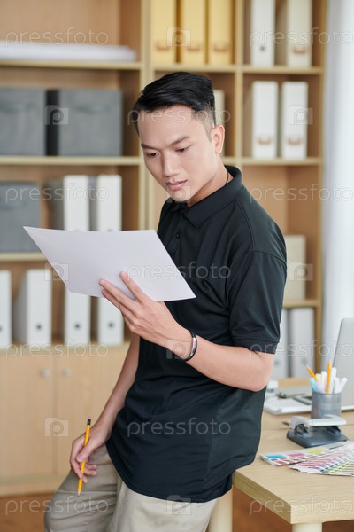 Архитектор читает документы с измерениями