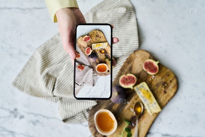 Фотограф делает фотографию на смартфоне