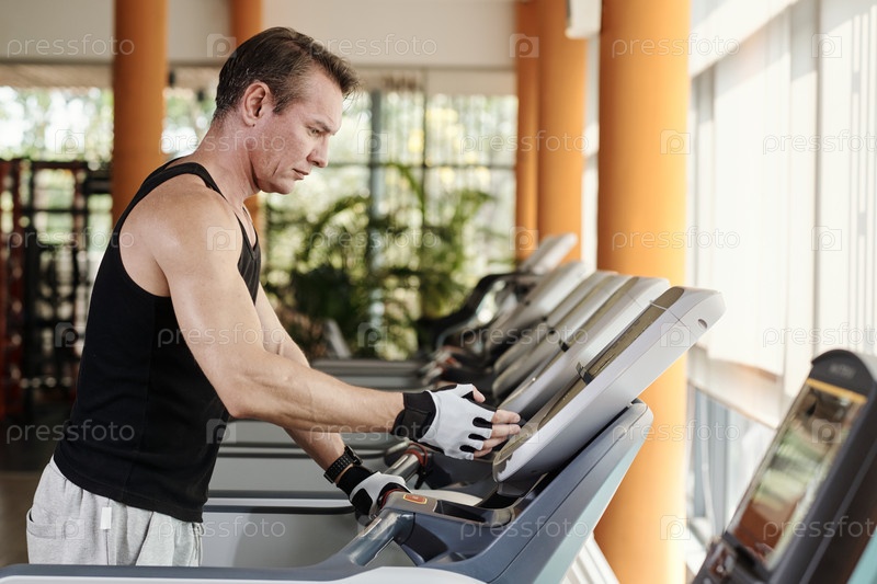 Человек, увеличивающий скорость на беговой дорожке