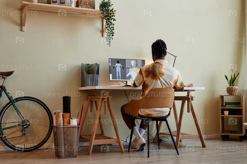 Человек строит цифровые 3D-модели на домашнем офисном рабочем месте