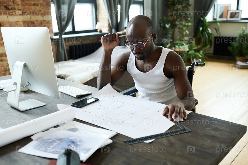 Мужчина с инвалидностью работает над архитектурным проектом