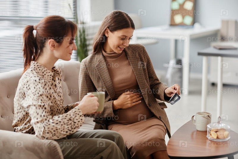 Беременная женщина показывает ультразвуковое изображение коллеге