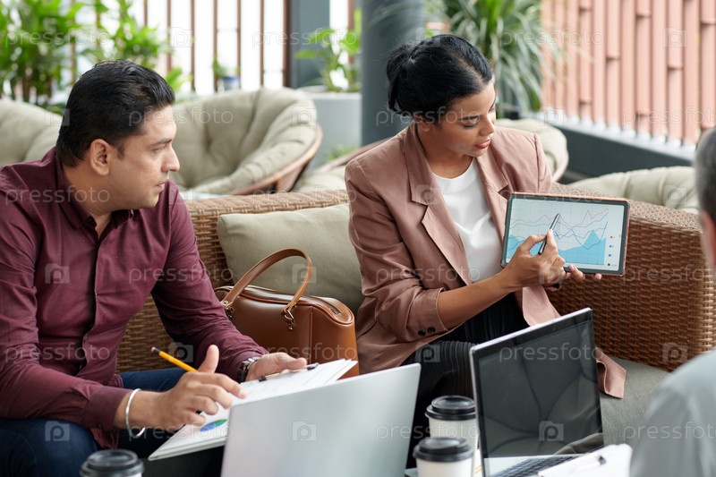 Деловая женщина показывает график на встрече