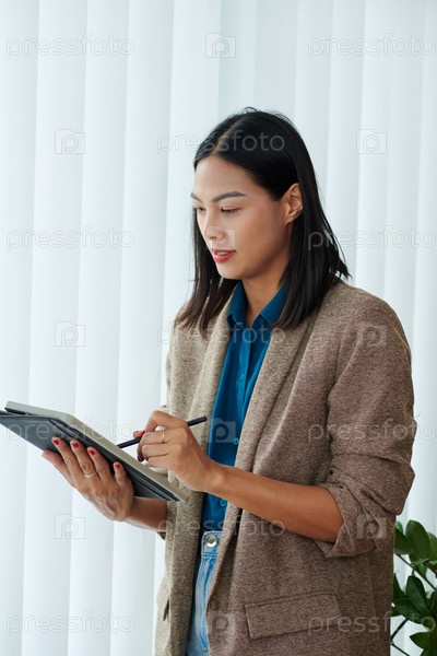 Деловая женщина, работающая на планшетном компьютере в офисе