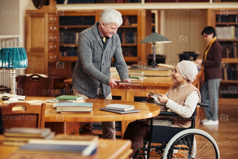 Женщина с инвалидностью в библиотеке