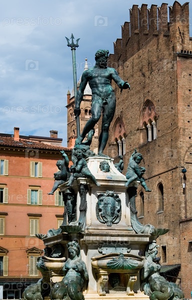 Красивый фонтан в центре города Болонья, Италия