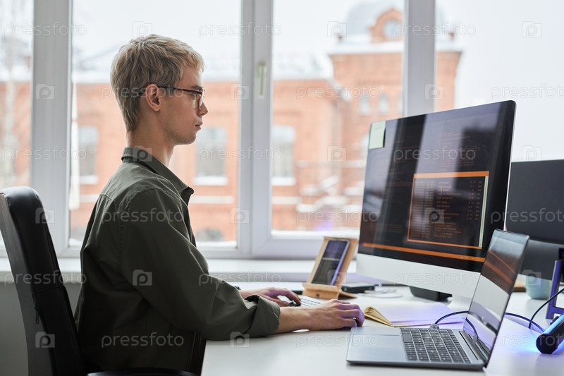 Программист, работающий с кодами безопасности для программы