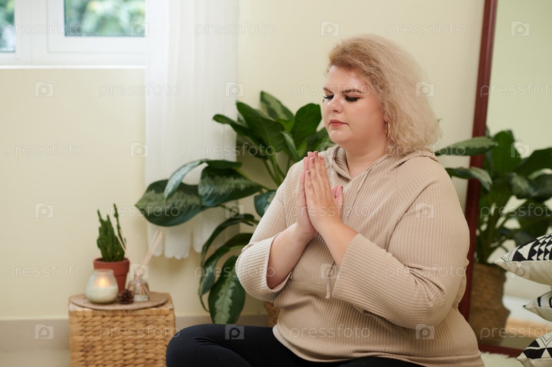 Расслабленная женщина медитирует дома