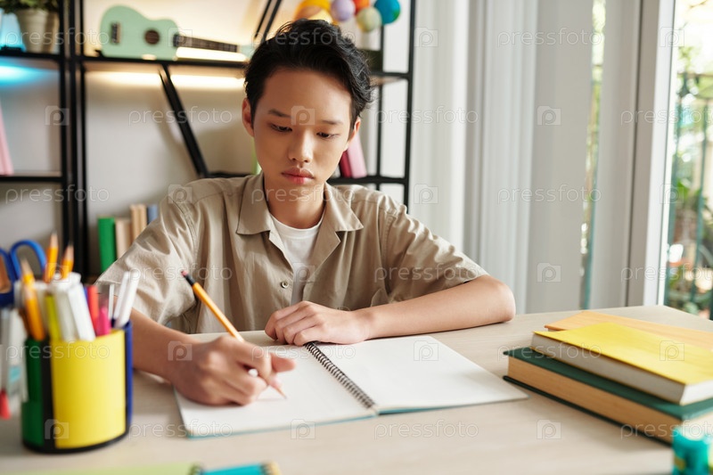 Вьетнамский мальчик-подросток делает домашнее задание