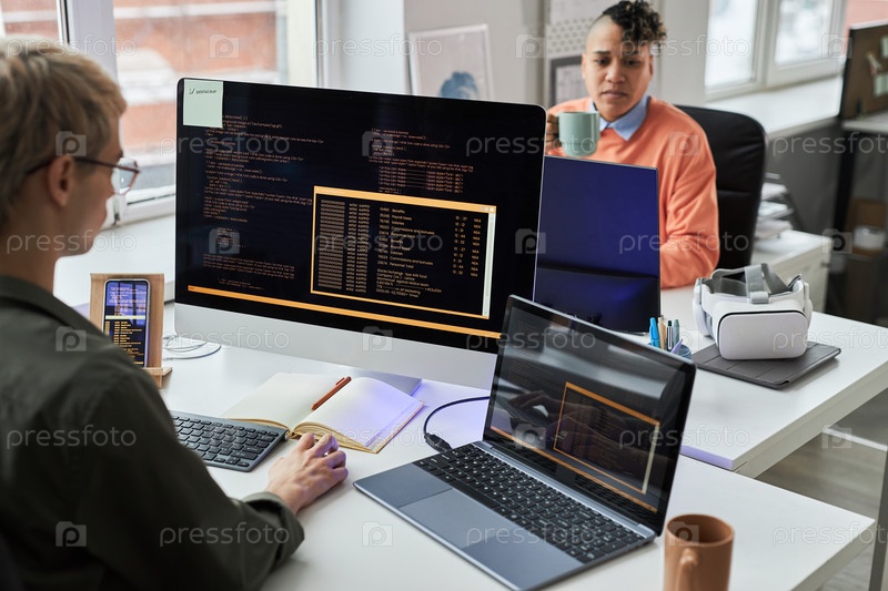 Программисты, работающие с кодами на компьютерах в офисе