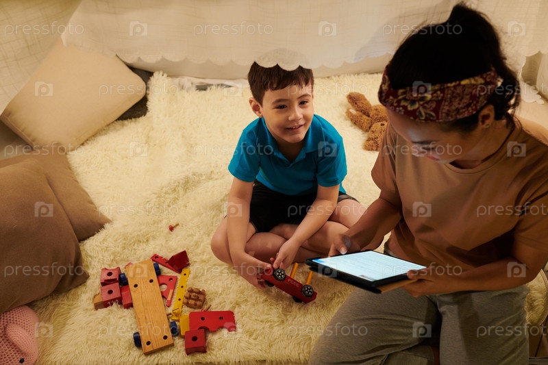 Молодая мать читает статью