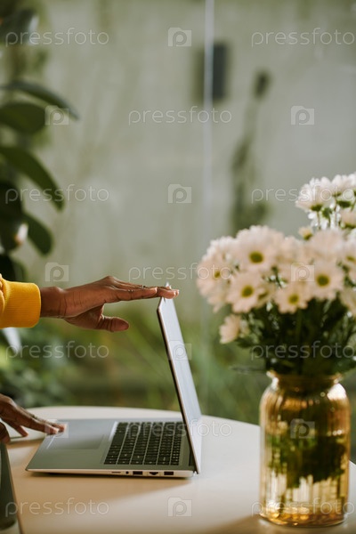 Женщина, закрывающая ноутбук