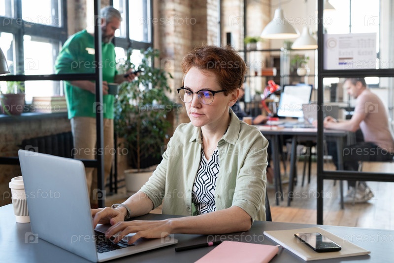 Женщина, работающая на ноутбуке в офисе