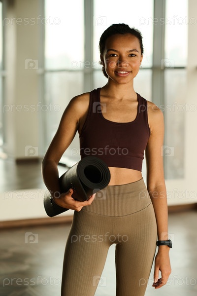 Молодая здоровая девушка стоит в фитнес-клубе