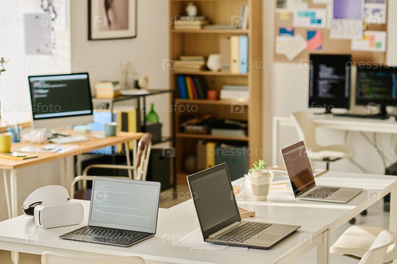 ИТ-офис с компьютерами на рабочих местах программистов