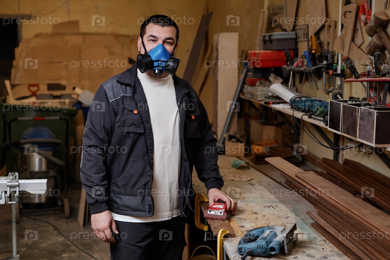 Портрет мужчины, носящего респиратор