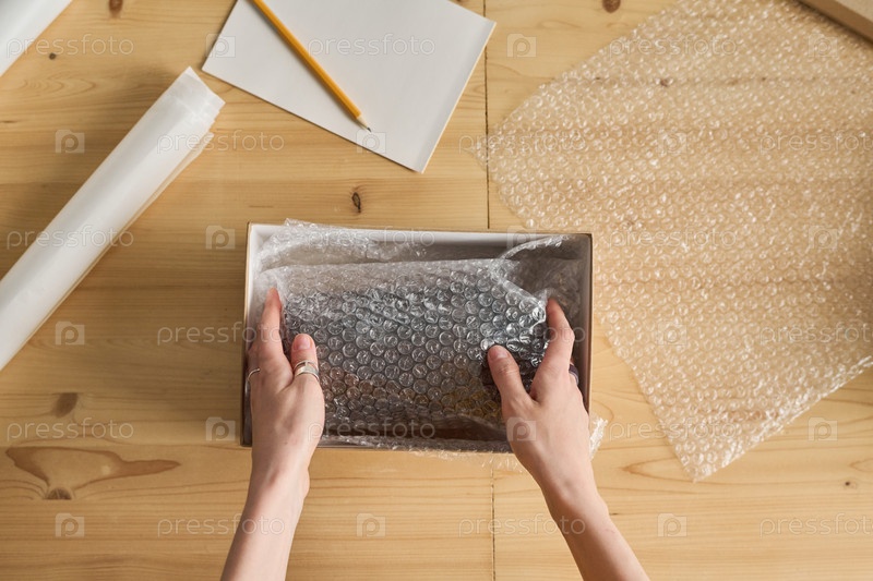 Работник упаковывает посылку для доставки