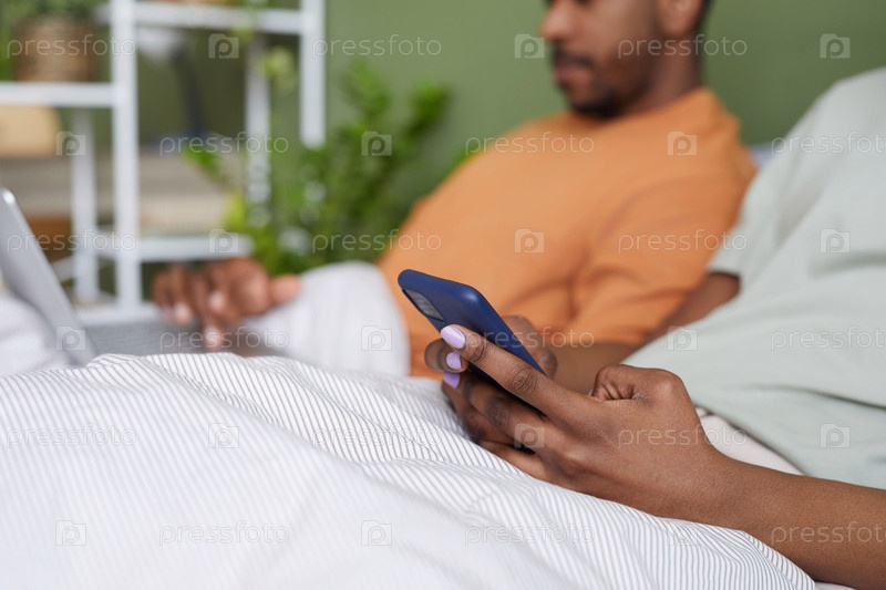 Женщина, использующая смартфон в постели