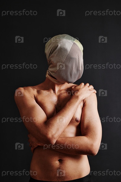 Без рубашки мужчина, скрывающийся в платке