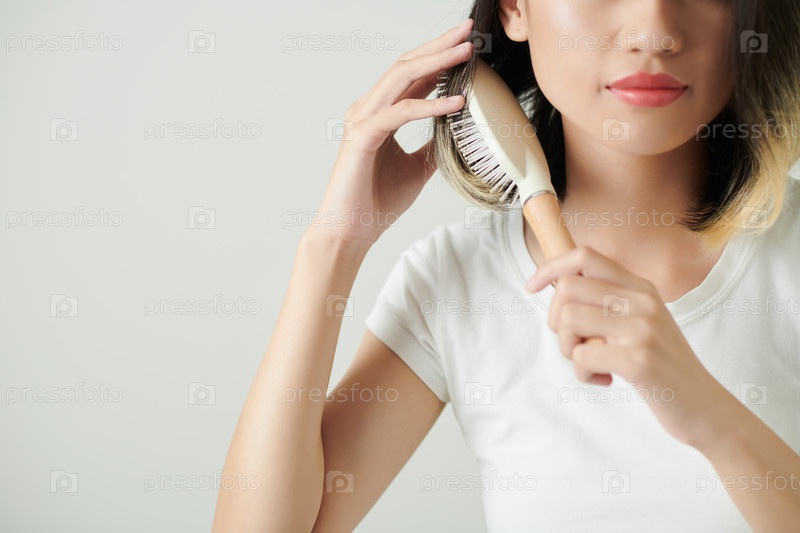 Молодая женщина чистит волосы