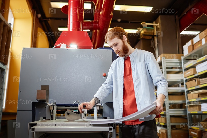Мужчина, работающий на типографии