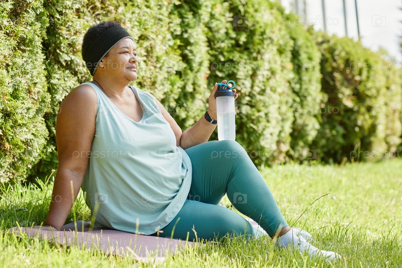 Женщина, отдыхающая на траве после тренировки на свежем воздухе