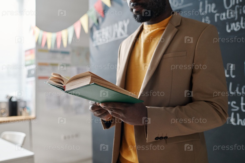 Учитель читает учебник на уроке