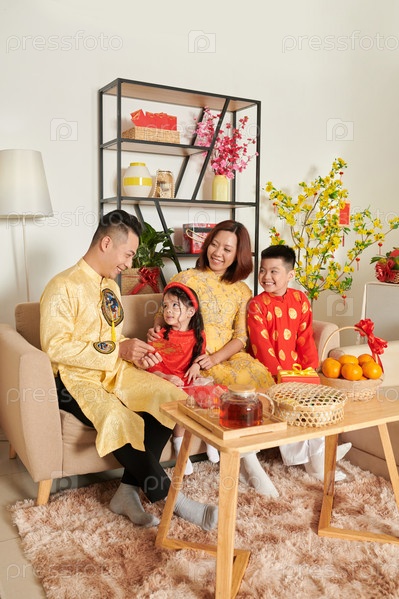 Отец дает дочери счастливые деньги