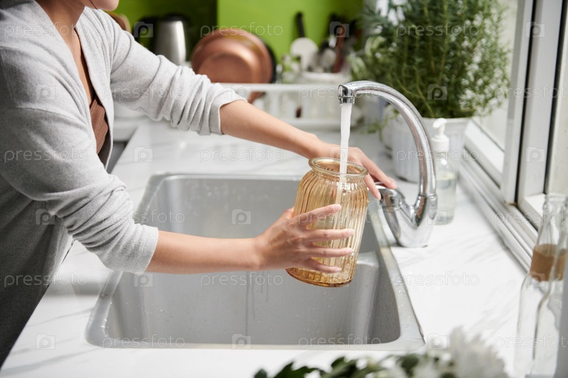 Женщина, наполняющая вазу водой
