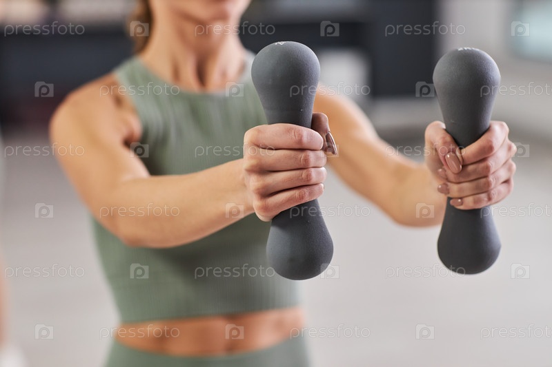 Спортивная девушка тренируется на гантели
